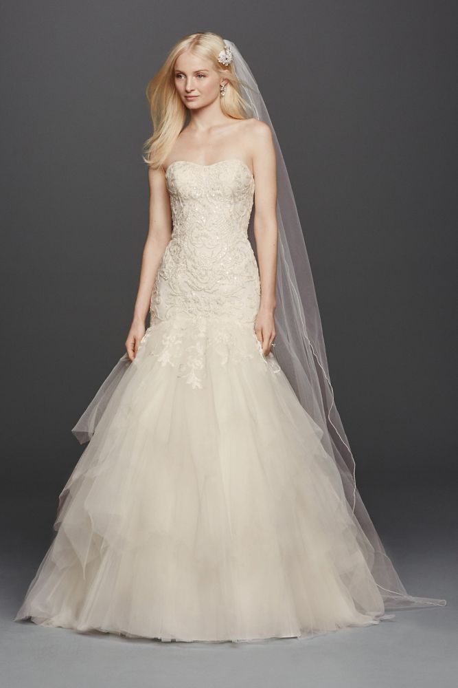 The latest oleg cassini wedding dresses from bridal fashion week are available at david's bridal. For more wedding gown inspiration, view additional collections from bridal fashion week here. This brand creates cheаp and elegant options for contemporary brides. Whisper pink cwg 614 traditional wedding dress size 10 (m). Take everyone's breath away as you walk down the aisle is this stunning fitted trumpet gown, featuring subtle pink flower appliques and gorgeous lace!